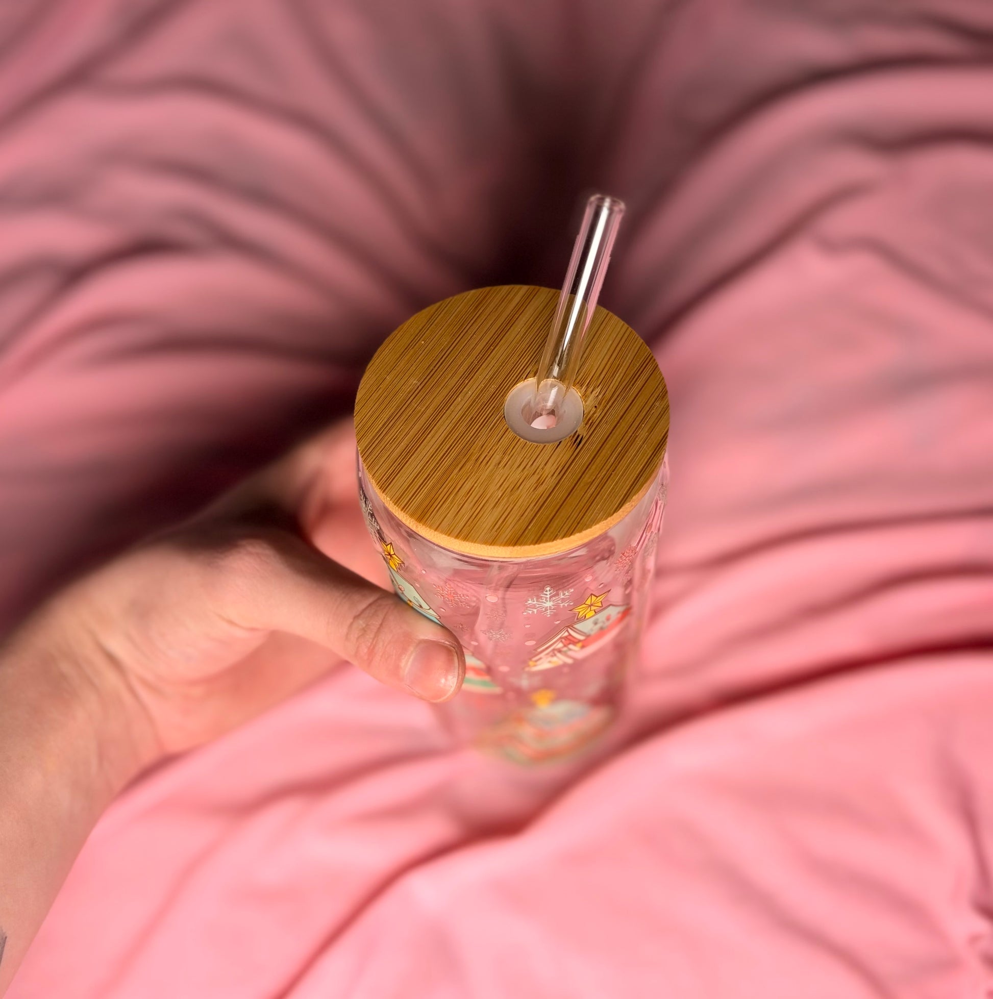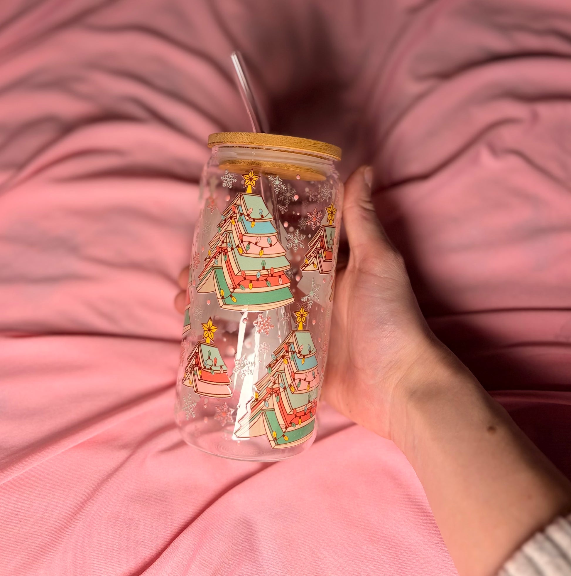 Book tree Glass with bamboo lid and straw