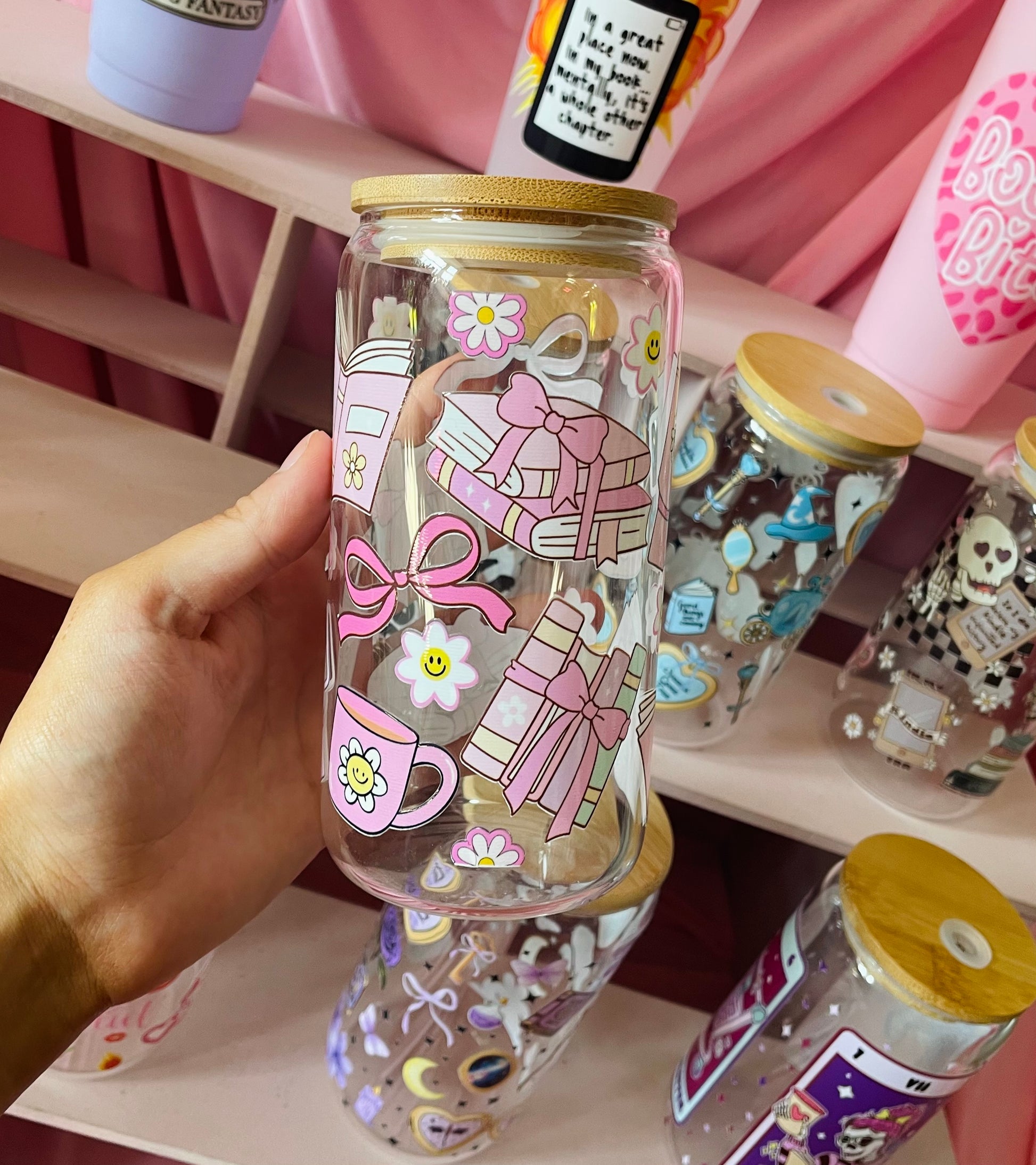 Coquette books glass with bamboo lid and straw