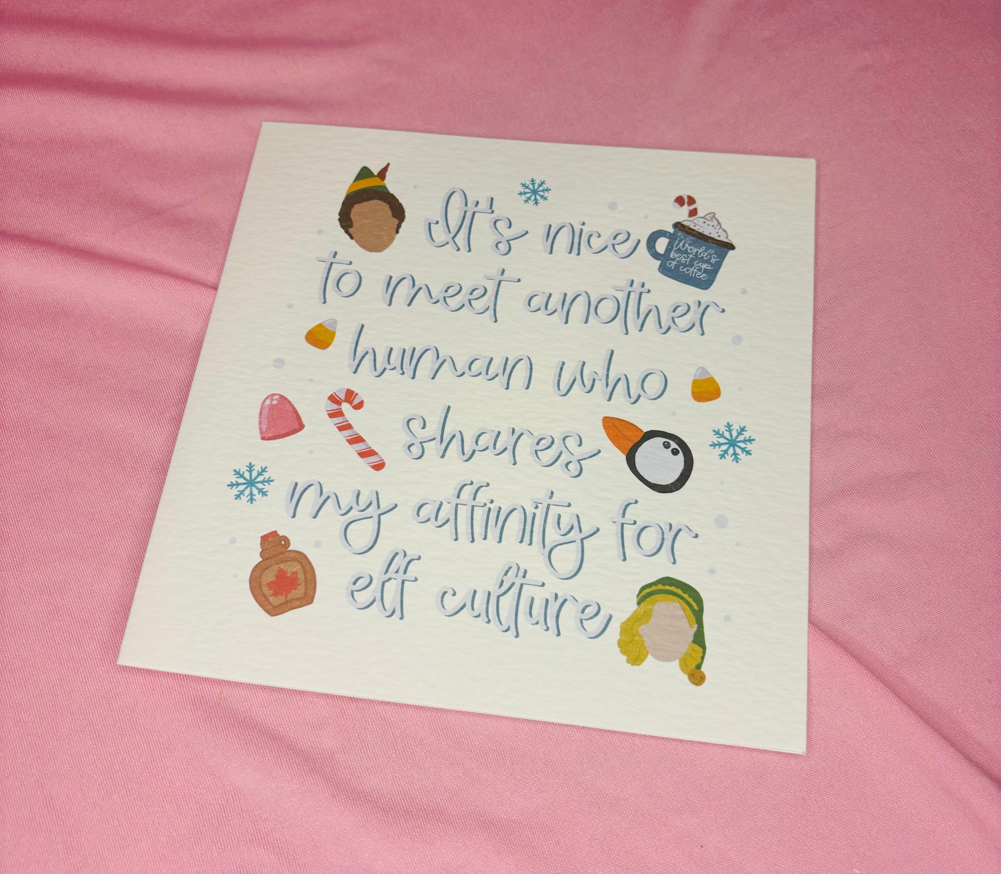 Its nice to meet another human who shares my affinity for elf culture christmas greeting card