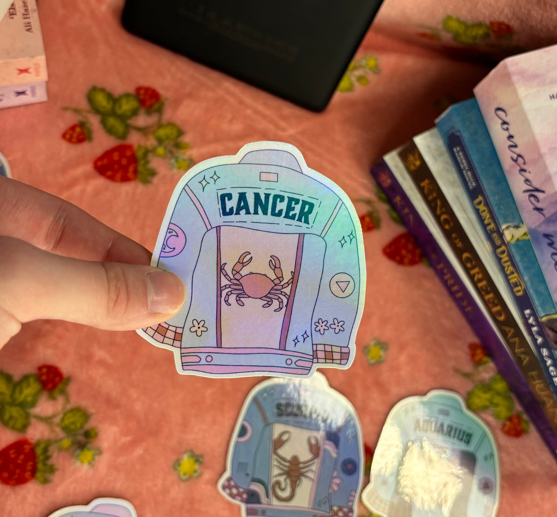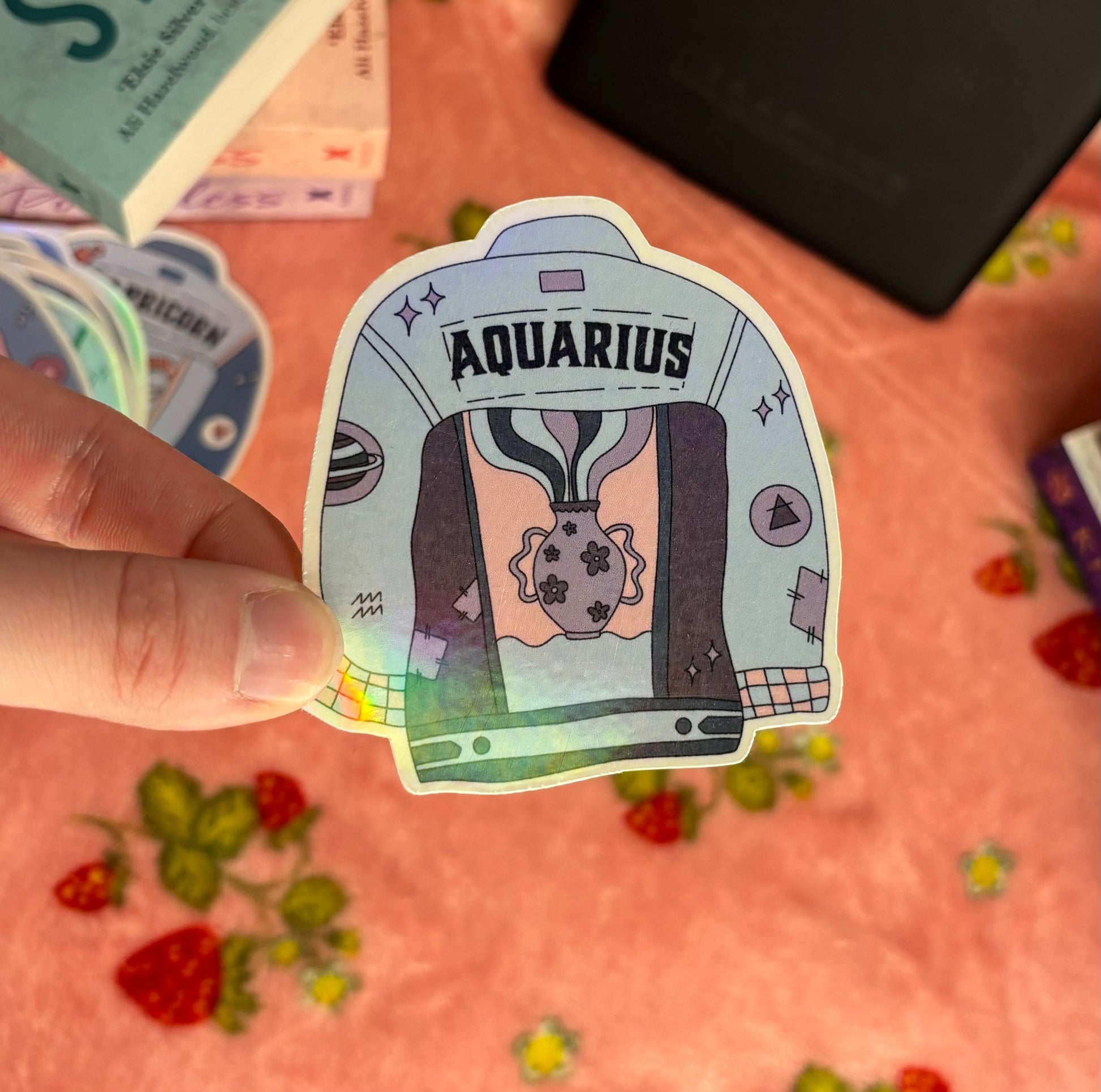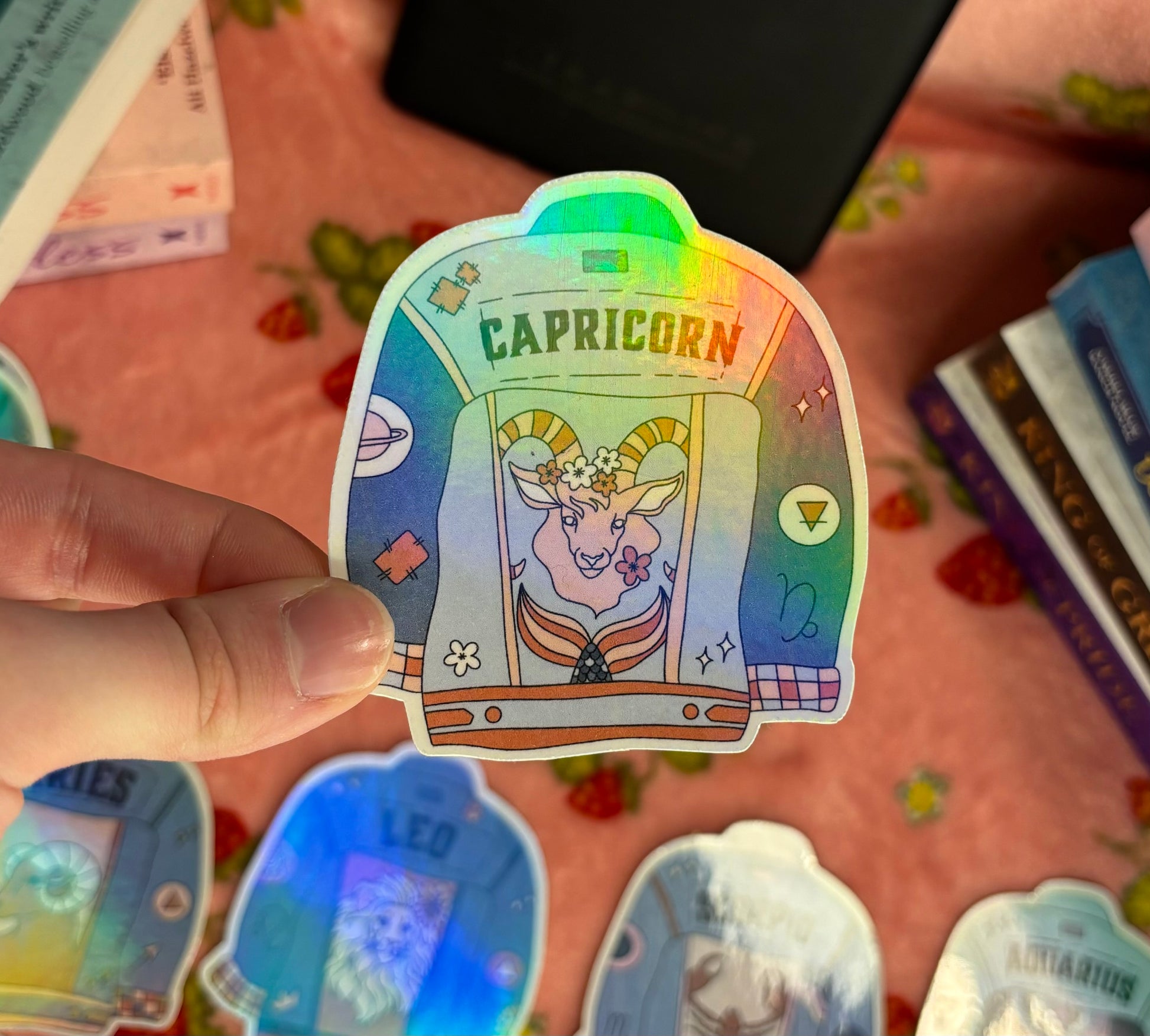 Printed on quality matte sticker paper, laminated with a holographic overlay for extra protection and a extra cute finish!